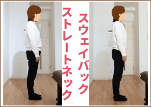 すると、身体は無意識にバランスを取ろうとして、次のような姿勢になりやすくなります。